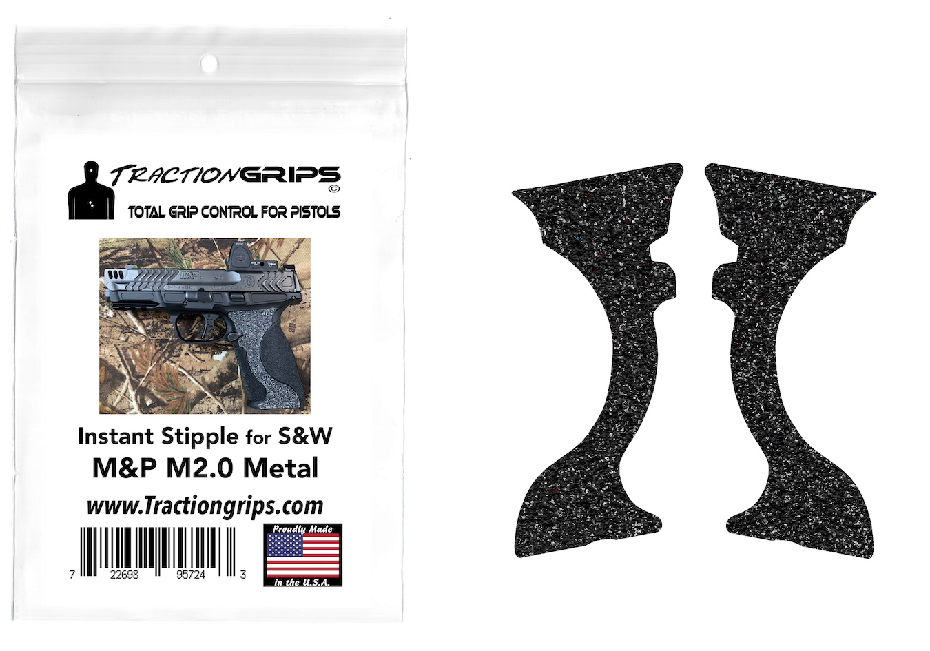 Instant Stipple granulated rubber grip tape overlay for Smith & Wesson M&P 9 M2.0 Metal frame models. Includes overlays to fit the right and left sides, covering the exposed metal.