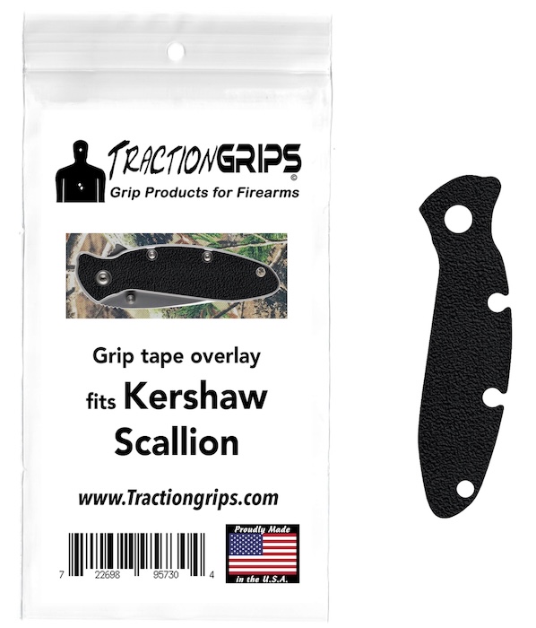 Grip tape overlay for Kershaw Scallion knives. Covers one side of the knife, opposite the pocket clip.